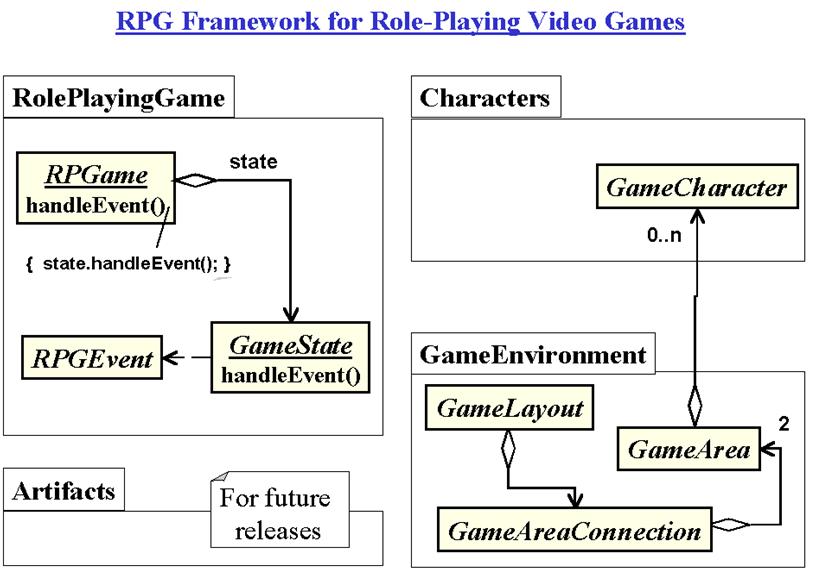 packages and classes of a framework for role-playing video games.