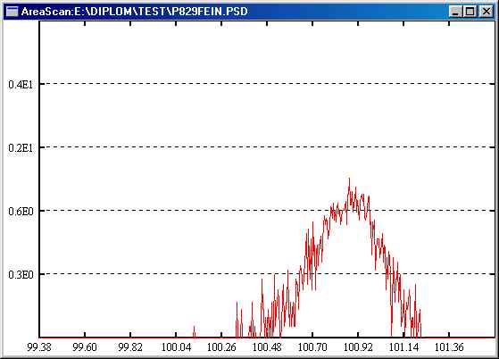 Dargestellt wird im Areascanfenster ein Koordinatensystem, auf der Abzisse sind die Werte der Scan-Achse, auf der Ordinate dieWerte für die gemessene Intensität abgetragen.