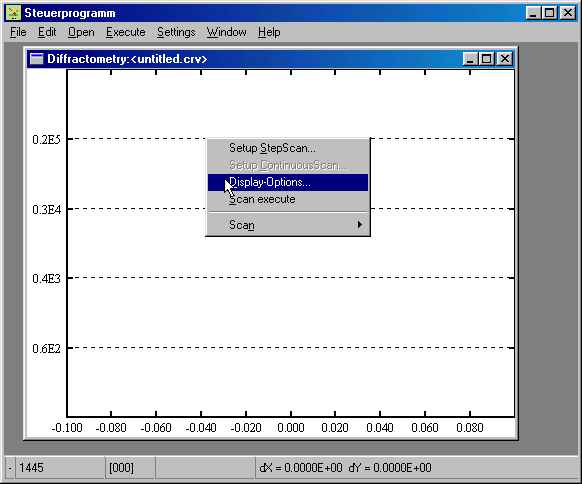 Zur Durchführung von Experimenten zur Diffraktometrie/Reflektometrie sowie zur Auswertung der gewonnenen Meßdaten benötigt man natürlich auch eine grafische Darstellung der Daten. Diese erleichtert die Auswertung der Experimente durch gezielte Darstellung von Abhängigkeiten der Parameter. Grundsätzlich wird auf eine Darstellung der Parameter in einem Koordinatensystem zurück gegriffen. Zur optimalen Nutzung der Grafikausgabe läßt sich diese noch gezielt manipulieren.