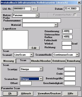 Diffraktometrie-/ Reflektometrieprotokolldatei; existiert dieser Wert nicht, wird der Standardwert verwendet